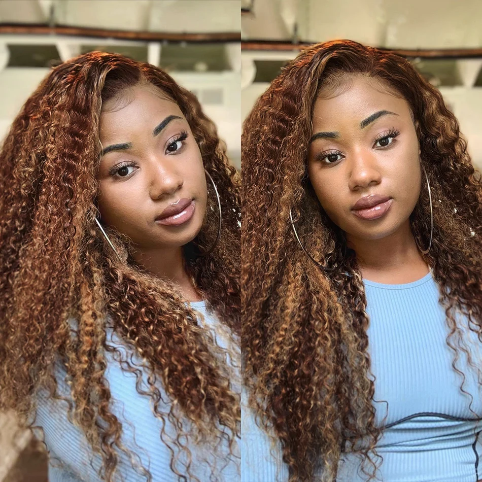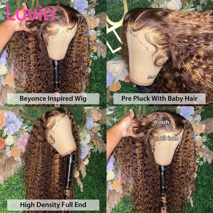 Luvin 30 32 дюймов, с подсветкой имбирный кружевной передний парик кудрявые человеческие волосы парики цвет глубокая волна медовый блонд фронтальный парик для черных женщин