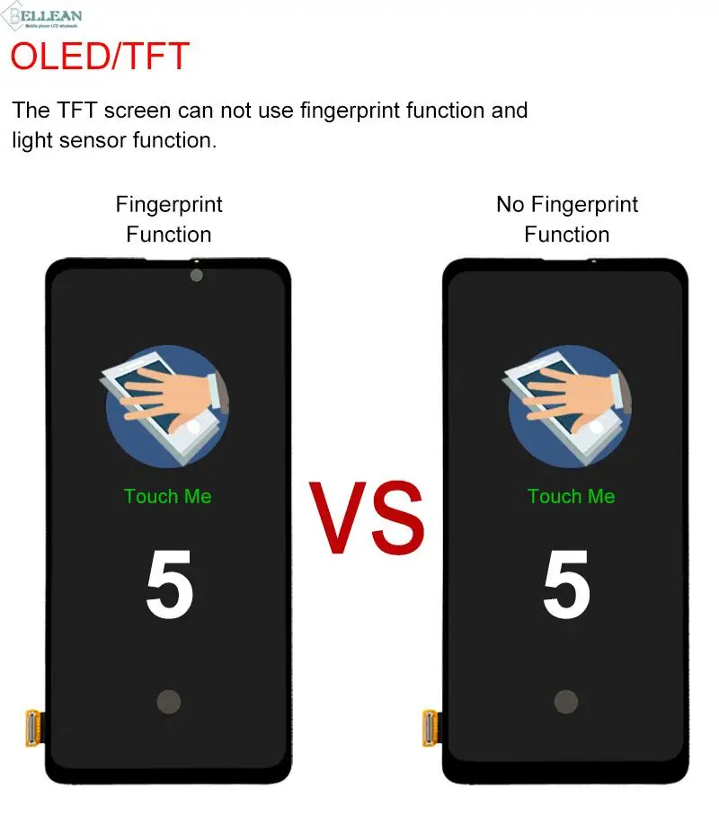 Примечание: TFT будет толще оригинального качества, он не может на 100% соответствовать раме, а качество TFT не может использовать функцию отпечатков пальцев.