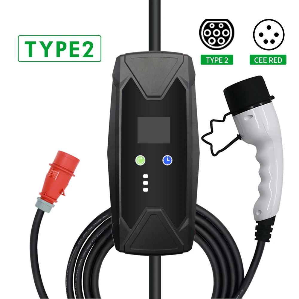 Зарядное устройство для электромобилей, 11 кВт, 380-450 в, 16 А, 3 фазы, IEC 62196, тип 2, EV, зарядная вилка, портативное зарядное устройство для электромобилей, 5 м, 7 м, сенсорный экран