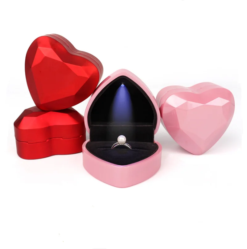 Шкатулка в форме сердца со светодиодной подсветкой для колец, ожере...