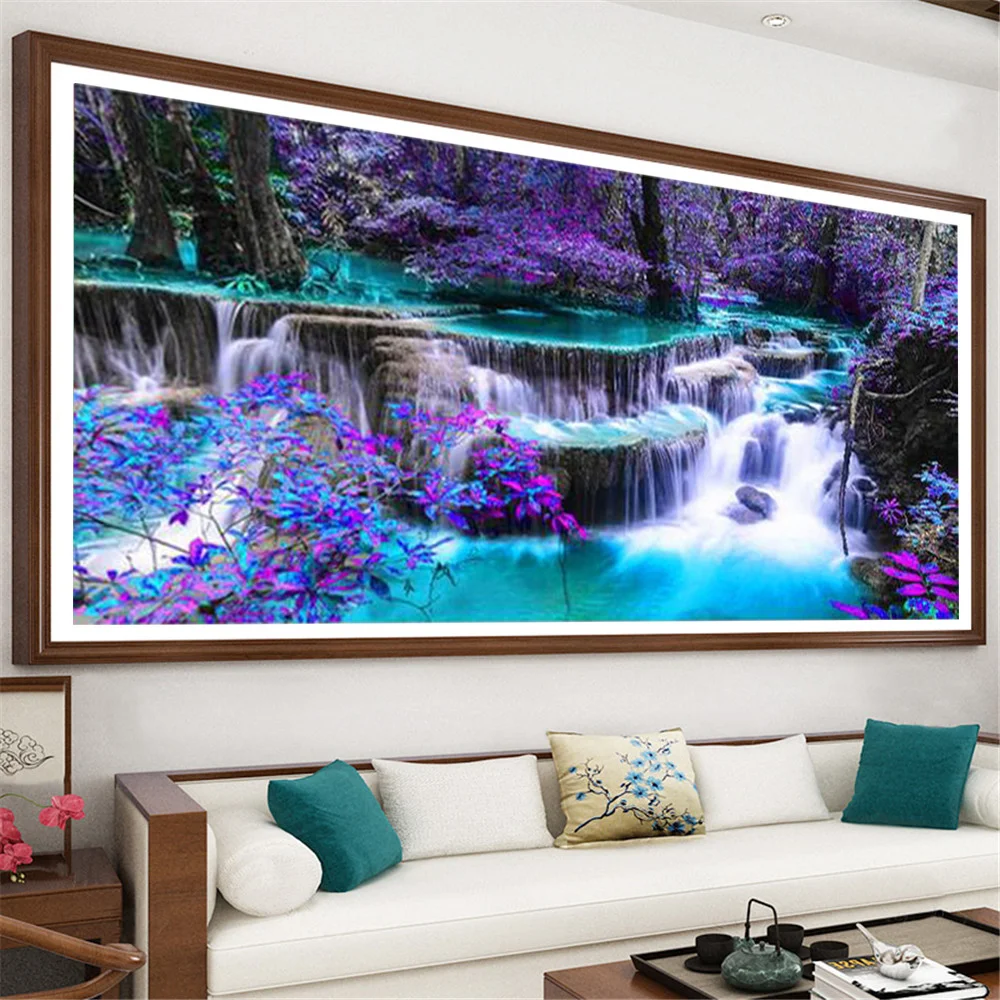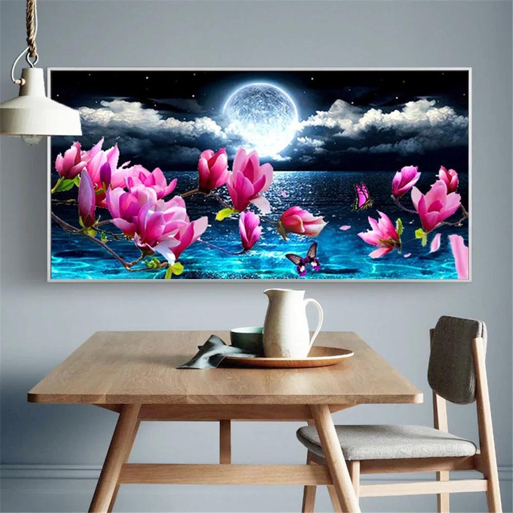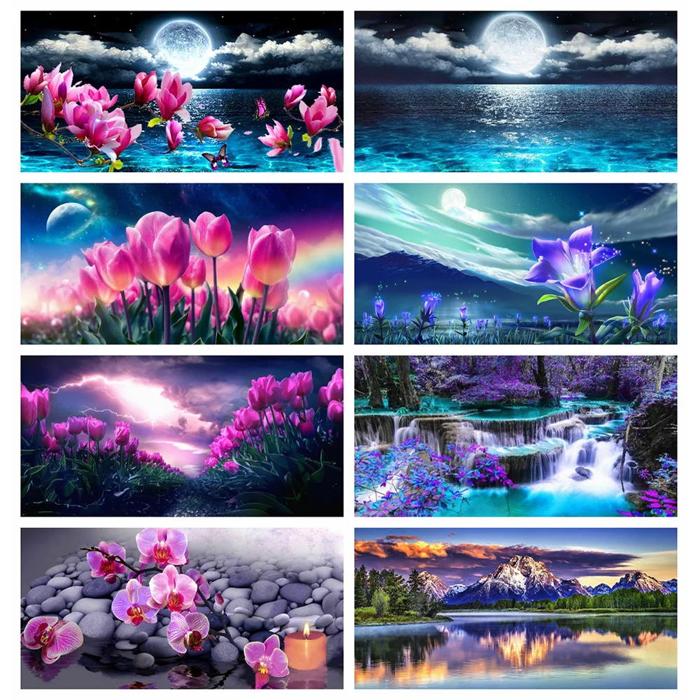 Набор для алмазной вышивки Huacan, алмазная 5D картина Орхидея, Водопад, Луна, вышивка, украшение для спальни