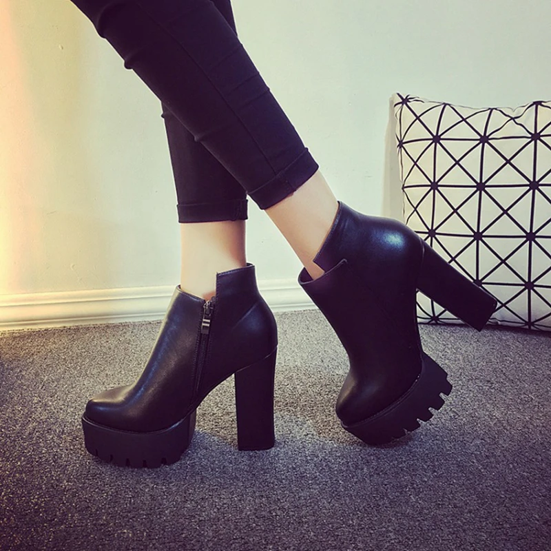 ботинки на платформе туфли на платформе ботильоны женские обувь женская осень Женские резиновые ботильоны на молнии comemore, черные ботильоны на платформе и толстом очень высоком каблуке, осенние ботинки для женщин
