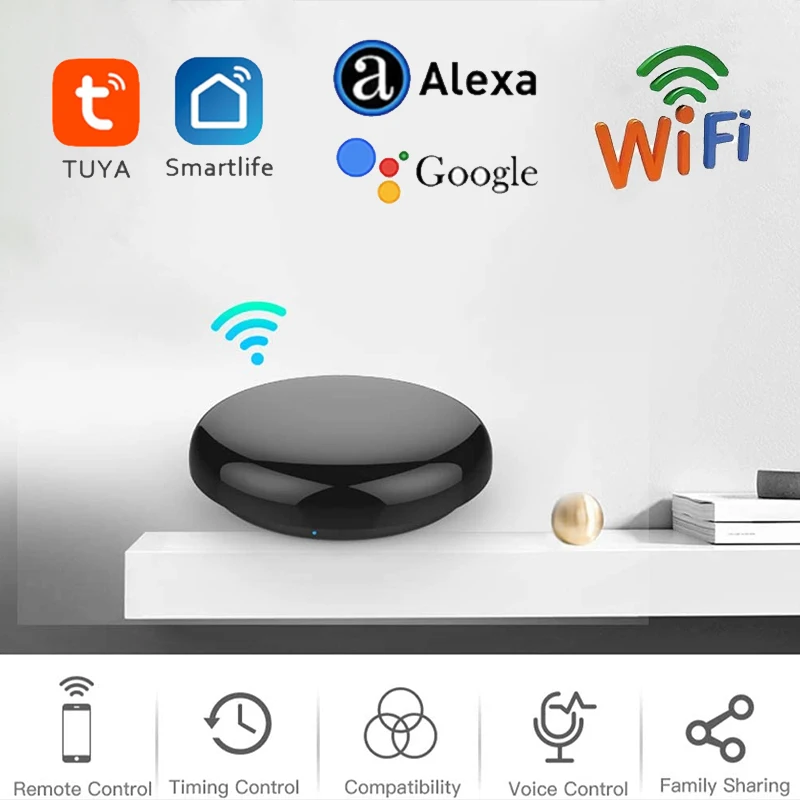 Совместим с Alexa/Echo, Google Home для голосового управления вашим телевизором, STB, кондиционером и вентиляторами. Устройство поддерживает только 2,4G WiFi.