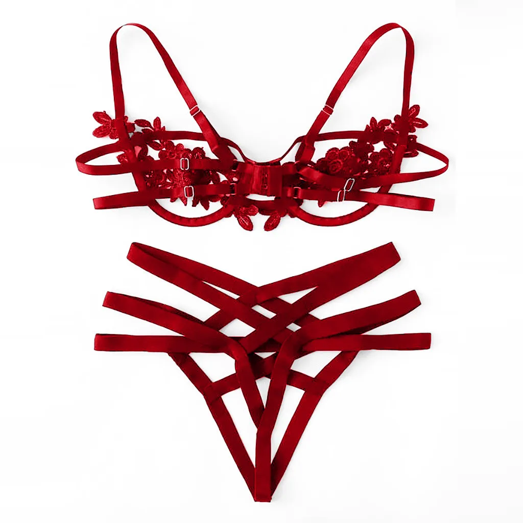 Женское нижнее белье, открытый бюстгальтер, вырезанный Женский комплект, кружевные прозрачные цветочные экзотические комплекты, женские порно эротические костюмы