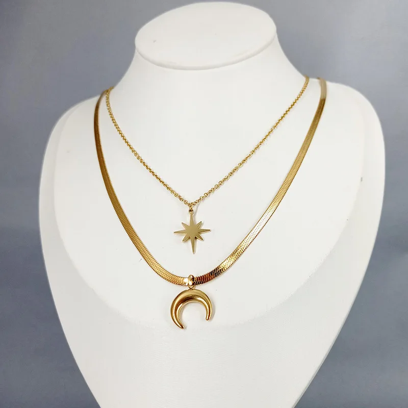 Ожерелье XIYANIKE женское, Двухслойное, из нержавеющей стали 316L, с подвесками в виде звезды и Луны, 2021