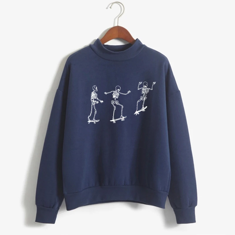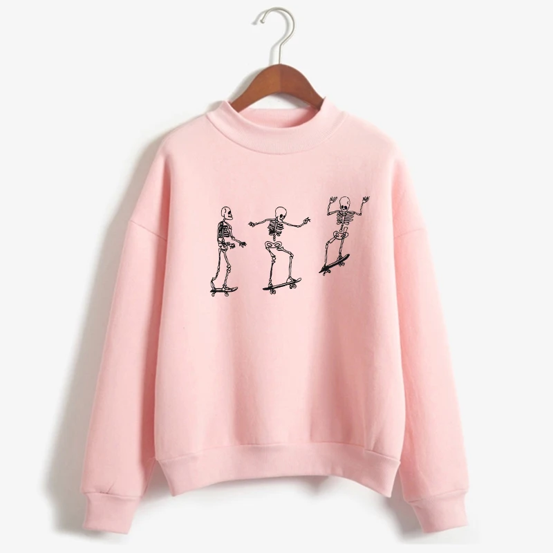 Женский свитшот y2k Kawaii, пуловер с рисунком скелета, повседневный флисовый водолазка, креативный Топ, толстовки в стиле Харадзюку