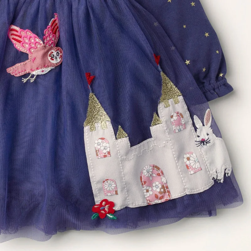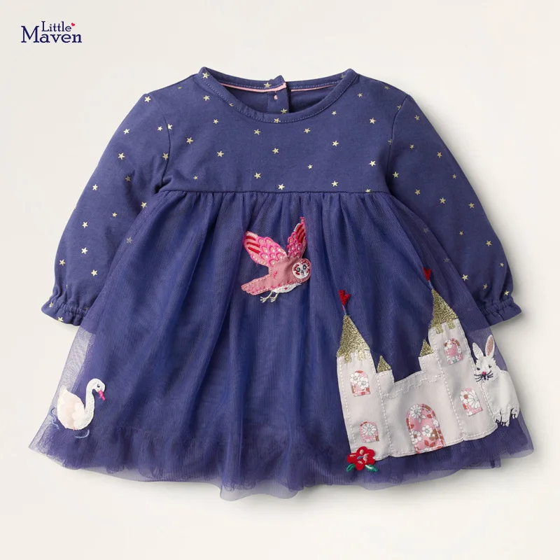 Платья для девочек 2021 на осень для маленьких девочек осенняя, брендовая одежда из хлопка с птичками замок животный Тюлевое платье принцессы вечерние платья для детей От 2 до 7 лет