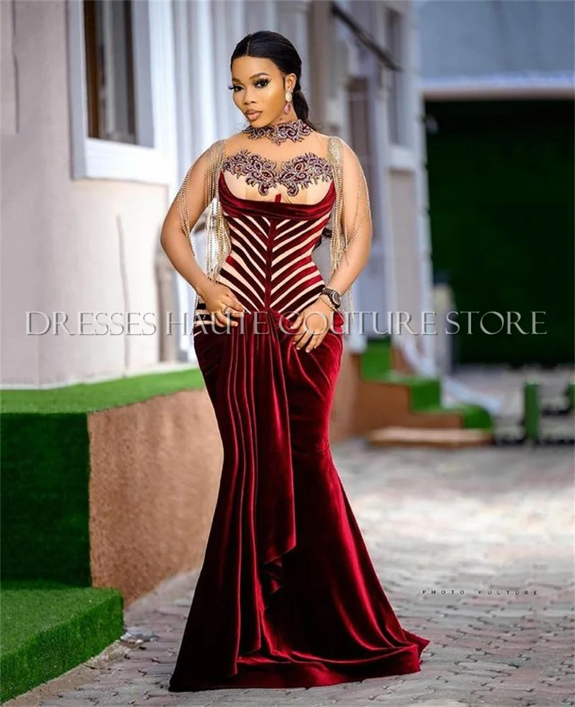 Vestidos formale красные бархатные вечерние платья женские вечерние...
