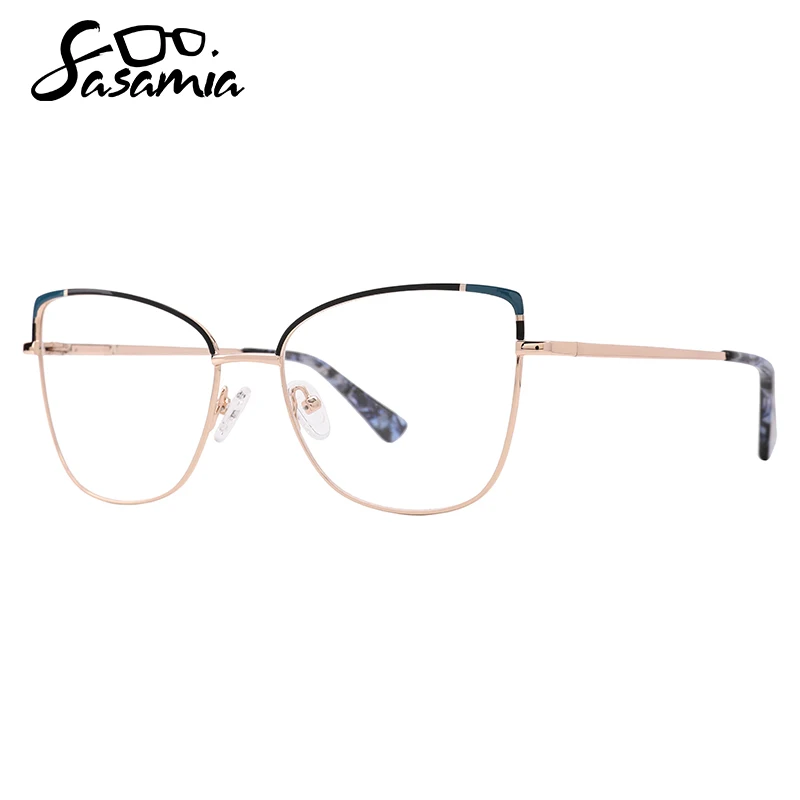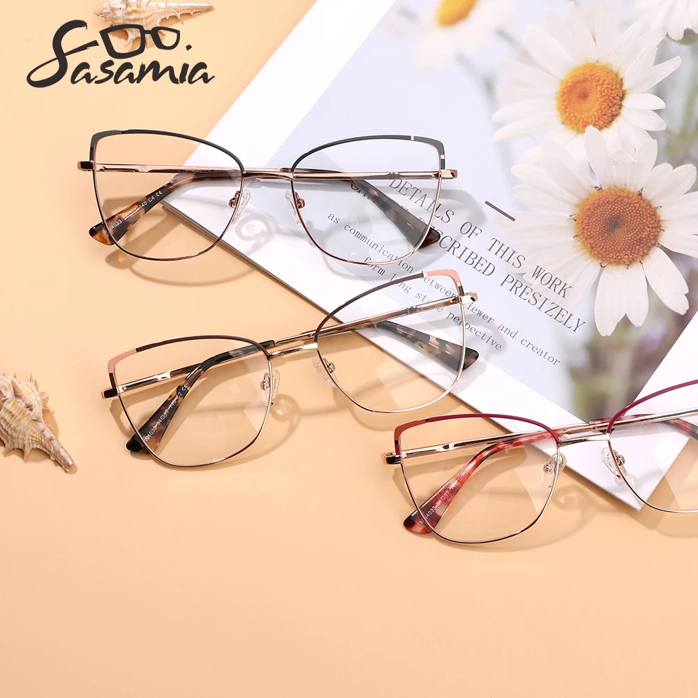SASAMIA, женские анти-синие очки, оправа для офисных леди, оправа для очков, кошачьи глаза, близорукость, оптические женские металлические очки, Лоскутная оправа