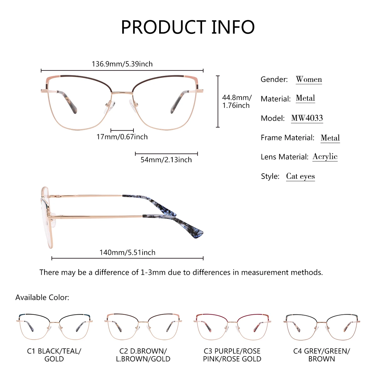 5. Ультра-Легкая металлическая рамка с металлическими дужками, в сочетании с винтажными и современными стилями кошачьих глаз, подходит для большинства лиц.