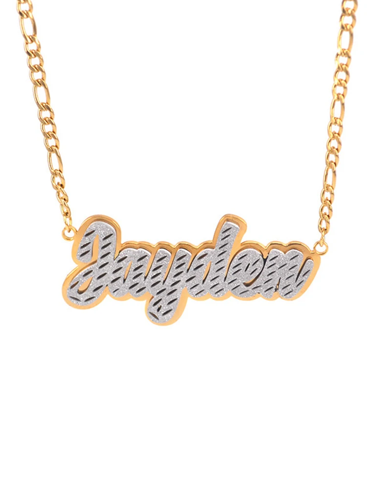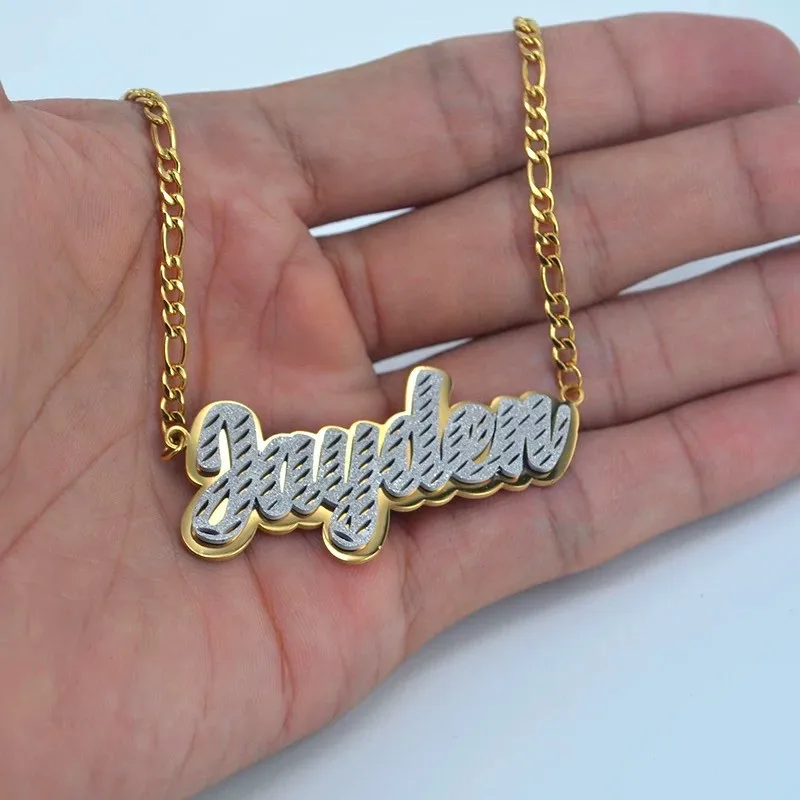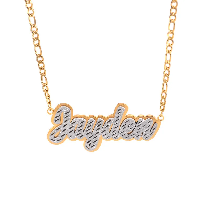 Ожерелье с именем персонализированного двойного цвета для женщин и мужчин, цепочка из нержавеющей стали Фигаро, индивидуальная табличка с матовой подвеской, ювелирные изделия