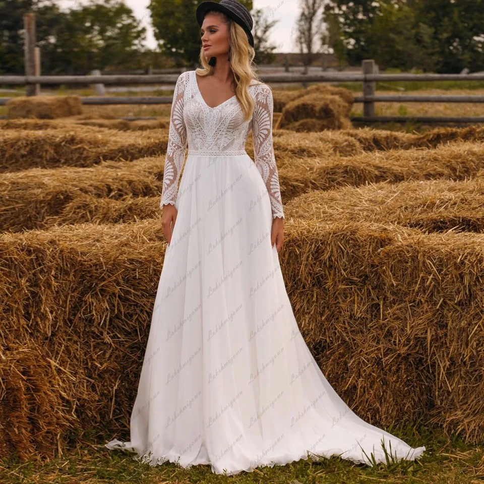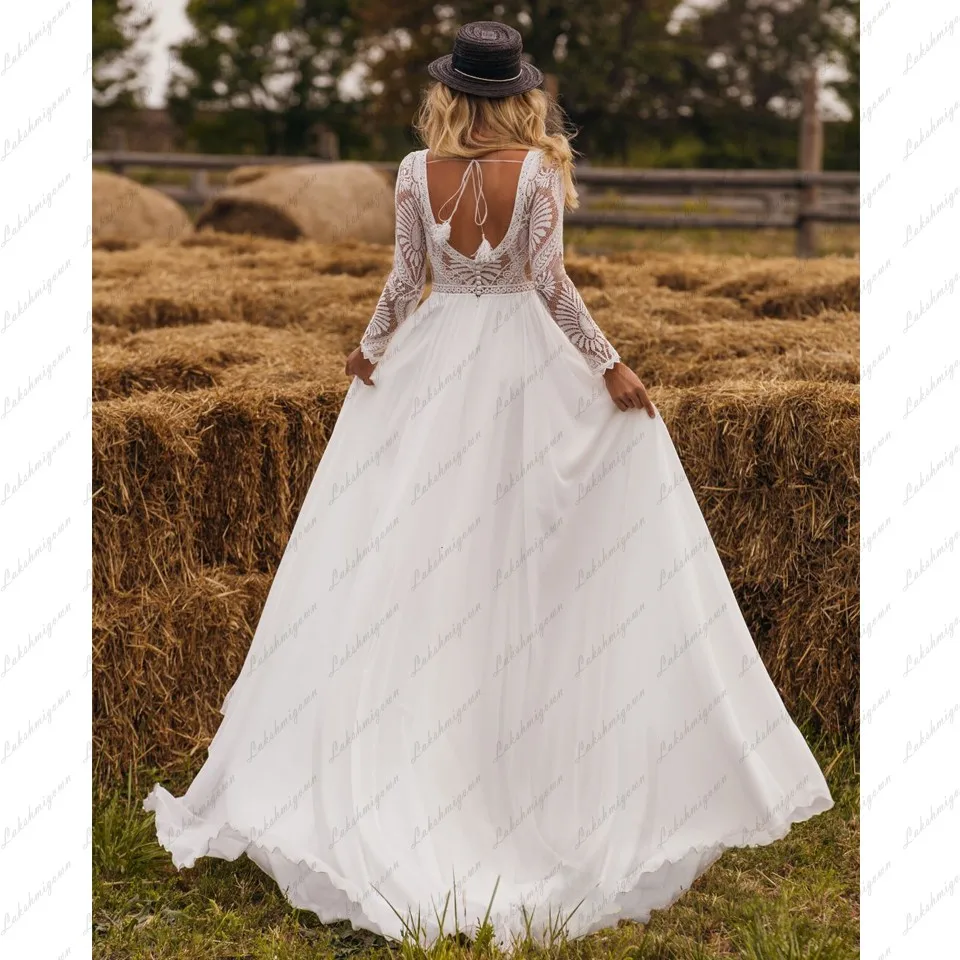Lakshmigown винтажное кружевное свадебное платье с открытой спиной с длинным рукавом в стиле бохо 2021 платье свадебное платье с V-образным вырезом