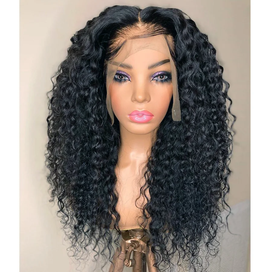 180% Плотность мягкий 26 дюймов ДЛИННЫЙ КРУЖЕВНОЙ фронтальный синтетический парик для черных женщин с глубокой волной с натуральной линией волос без клея Cruly