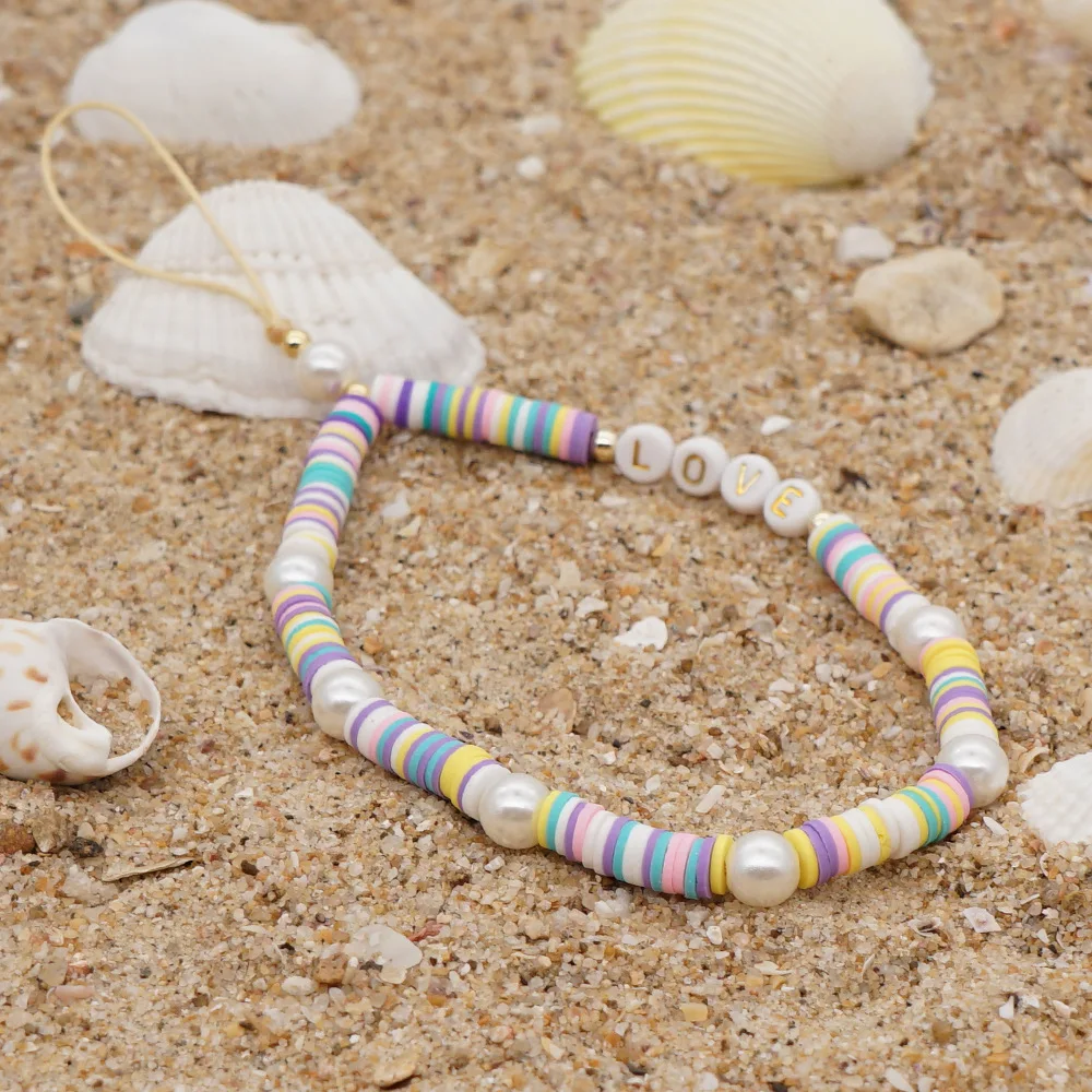 2021 Милая красочная мягкая Керамическая подвеска для мобильного телефона для девушек женская любовь бусина буква цепочка для телефона шнурок с защитой от потери ювелирные изделия в подарок