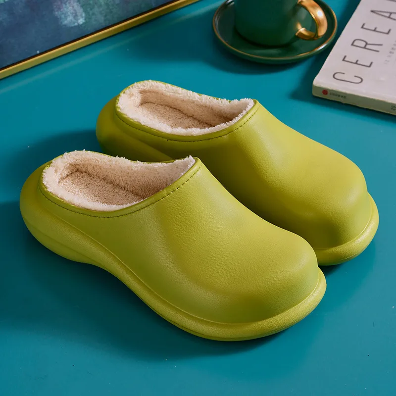 Водонепроницаемые зимние тапочки 2021, теплые пушистые домашние тапочки, женские хлопковые зеленые мягкие пушистые туфли на платформе, нескользящая обувь