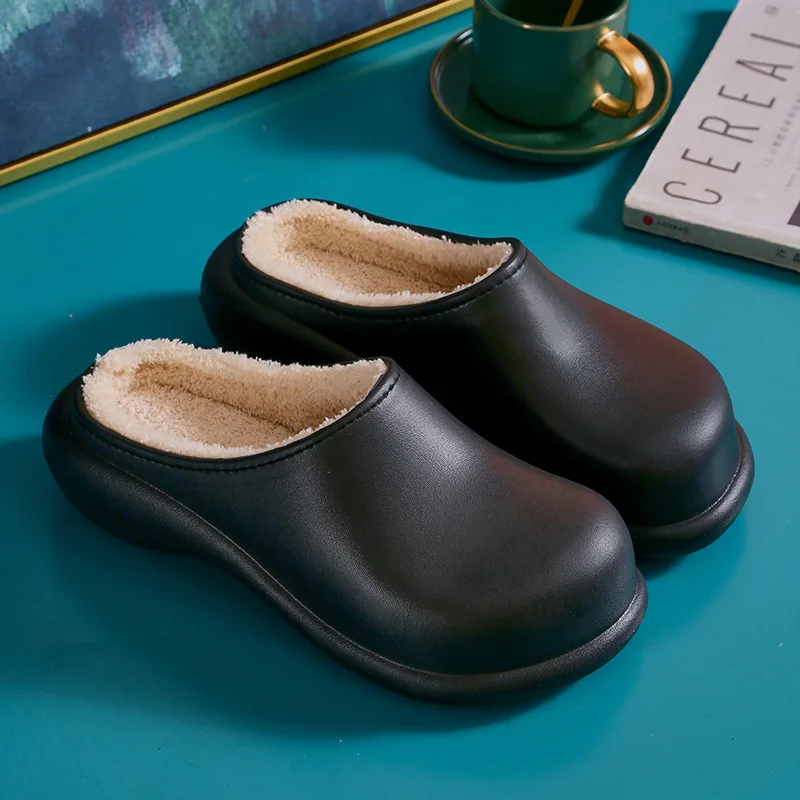 Шлепанцы женские зимние водонепроницаемые, меховые плюшевые шлепанц...