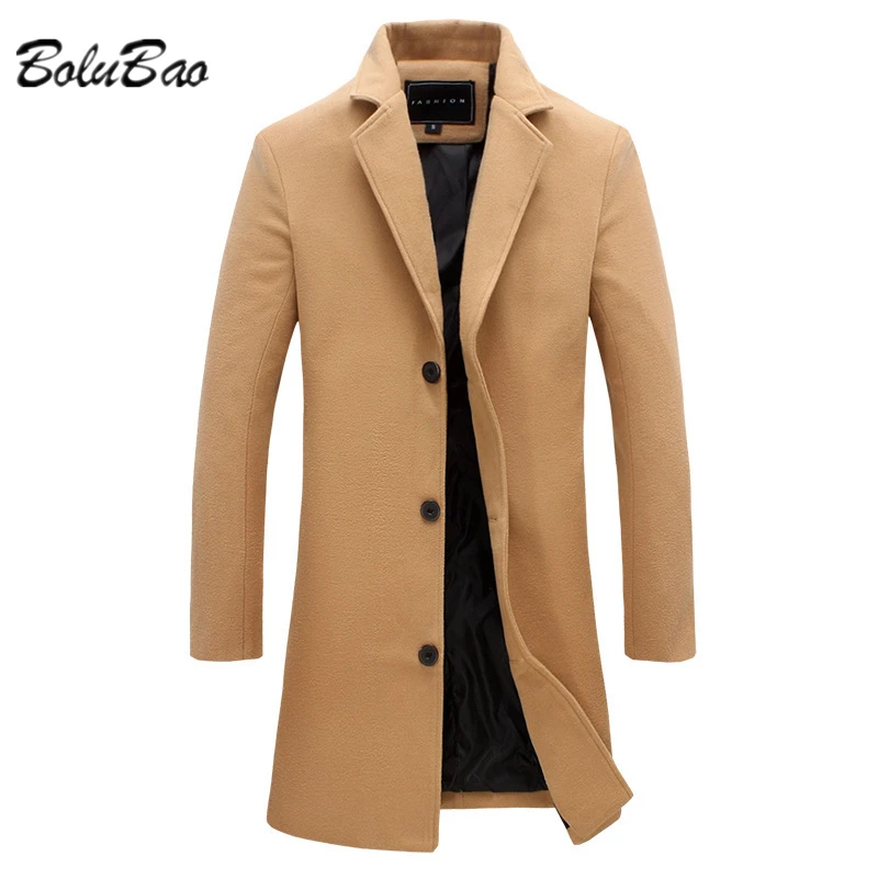 BOLUBAO осенне-зимняя мужская шерстяная куртка средней длины, тонкий однобортный мужской повседневный Тренч, однотонное пальто для мужчин