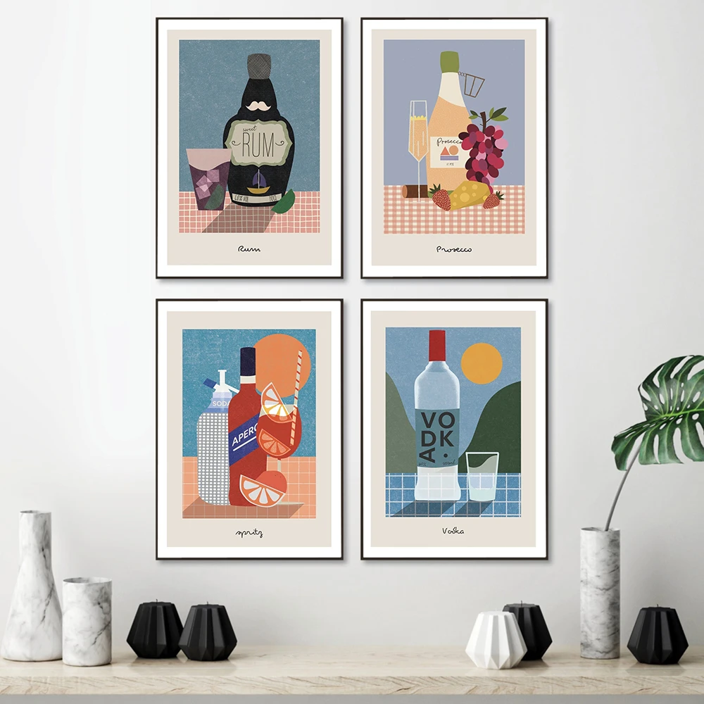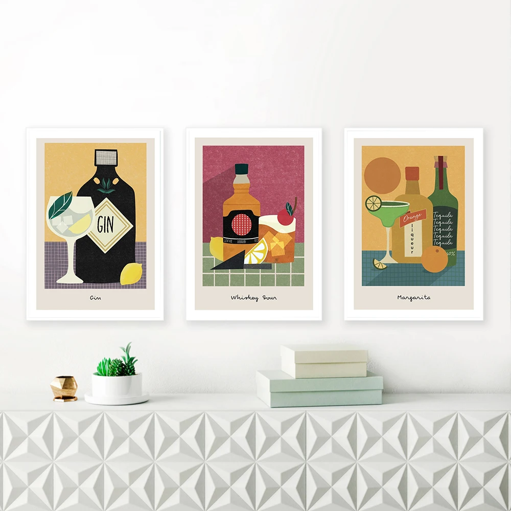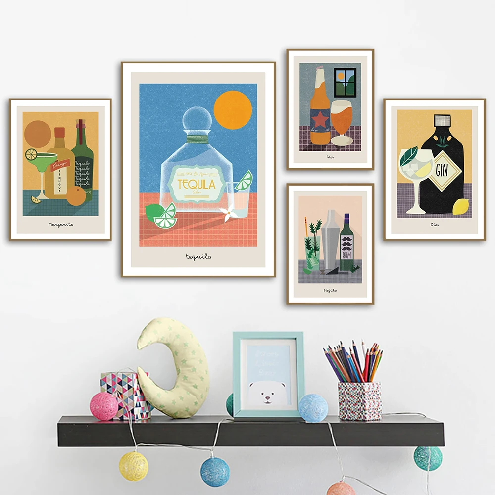 Настенная Картина на холсте с рисунком Джина рома Маргариты Мохито пива вина коктейля скандинавские постеры и принты настенные картины для декора бара комнаты
