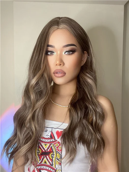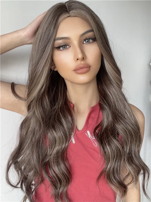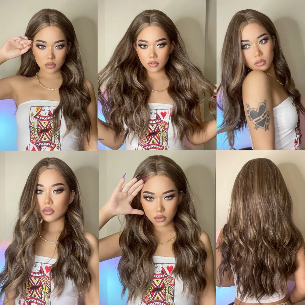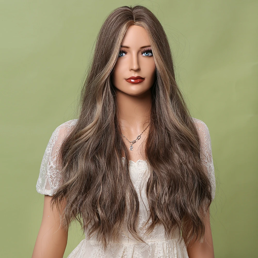 Длинные волнистые парики GEMMA темно-коричневые золотистые светлые синтетические парики для женщин термостойкие натуральные парики средней части для косплея