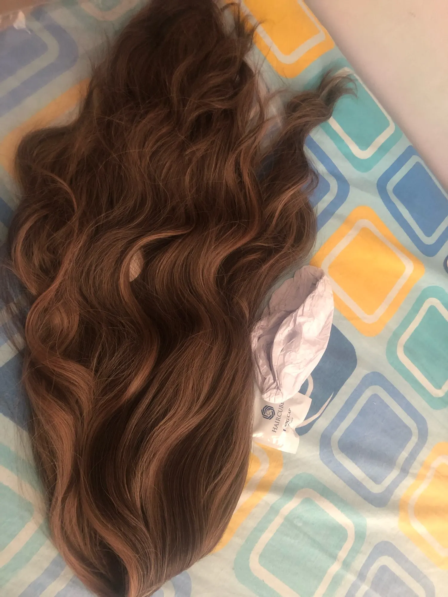 Моя любовь! Поставляется с сетчатой крышкой. Хорошее качество волокна, это натуральный, коричневый цвет, длинные глубокие волнистые волосы, которые делают их очень похожими на человеческие волосы, челка идеальна. Продавец просто хороший, ответил на все вопросы. Парик пришел очень быстро, сумел получить через 2 недели, и поэтому он пришел через 12 дней. Волосы без искусственного блеска, много волос, сетка для волос подходит для меня, у меня большая голова, но короткие волосы. Парик высокого качества, сетчатая крышка, выглядит естественно, в качестве подарка продавец отправил носок в подарок. Спасибо продавцу, сейчас я закажу парики только у него, за такую очень доступную цену.