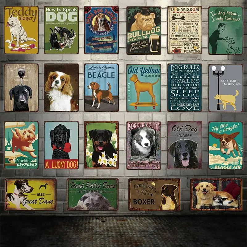 Собака правила бульдог боксеры Бигль немецкий дог металлические знаки прекрасный оловянный плакат домашний декор Паб Бар сад настенное искусство железо жестяная живопись