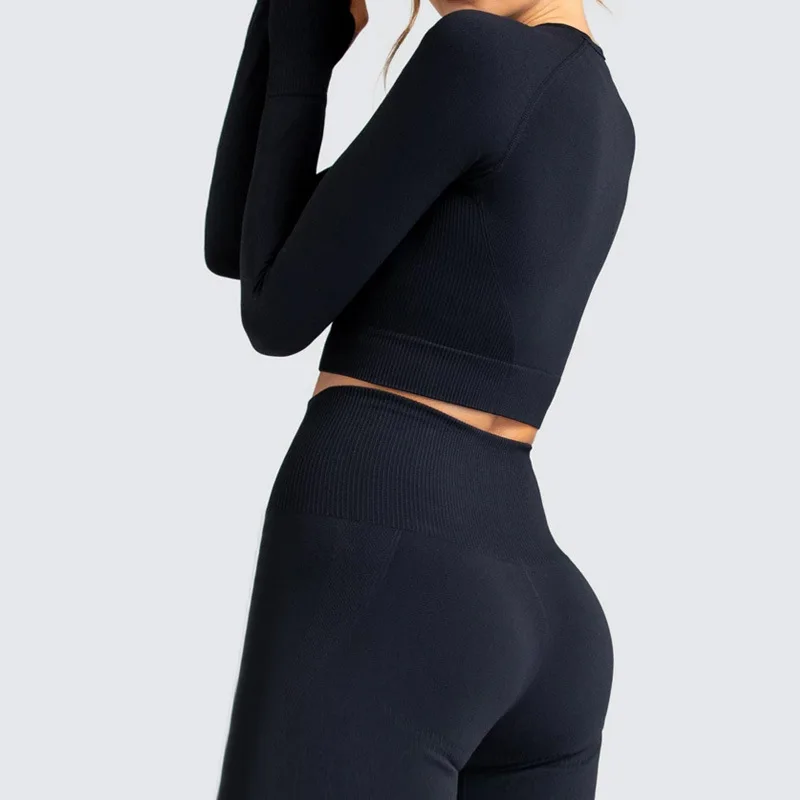 Бесшовный комплект для йоги, Привлекательный красивый спортивный бюстгальтер на спине, кроп-Топ с длинным рукавом, спортивная одежда для тренировок в тренажерном зале