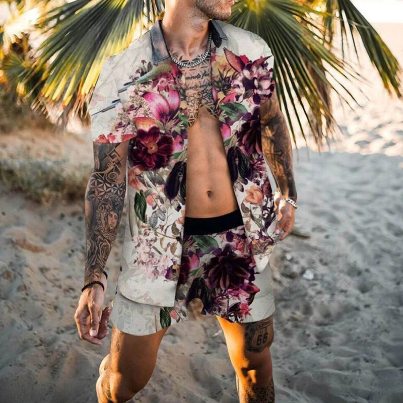 Мужские комплекты из 2 предметов, Пляжная футболка с коротким рукавом и кокосовым принтом, Повседневная Гавайская одежда, лето 2021