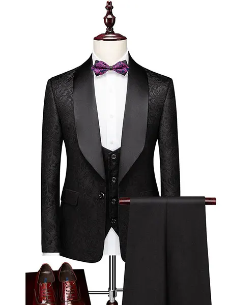 PAULDSM NewTuxedo мужской свадебный костюм 3 шт. приталенный роскошный жаккардовый костюм высокого качества модный мужской блейзер в британском стиле
