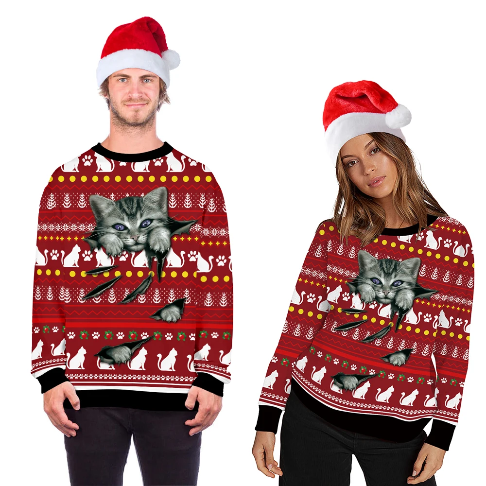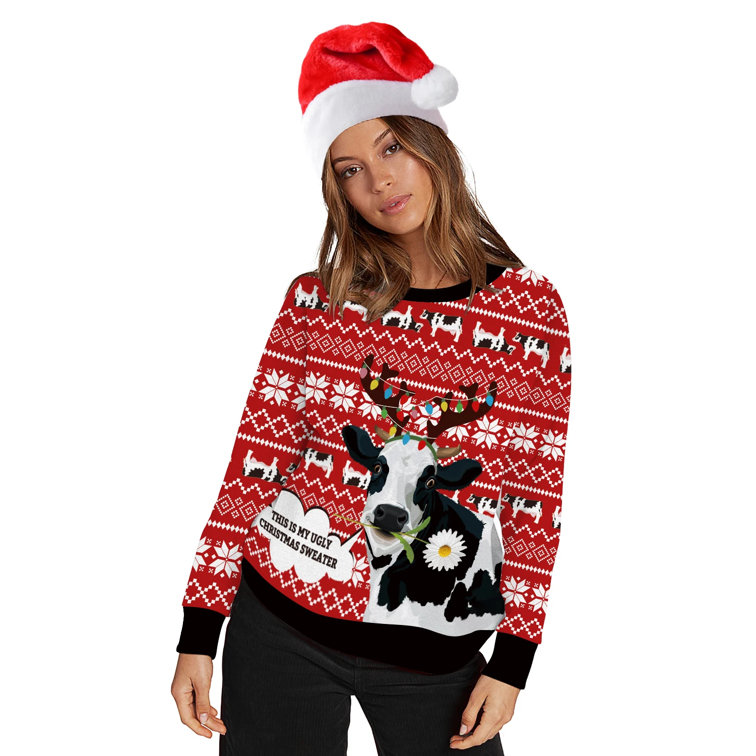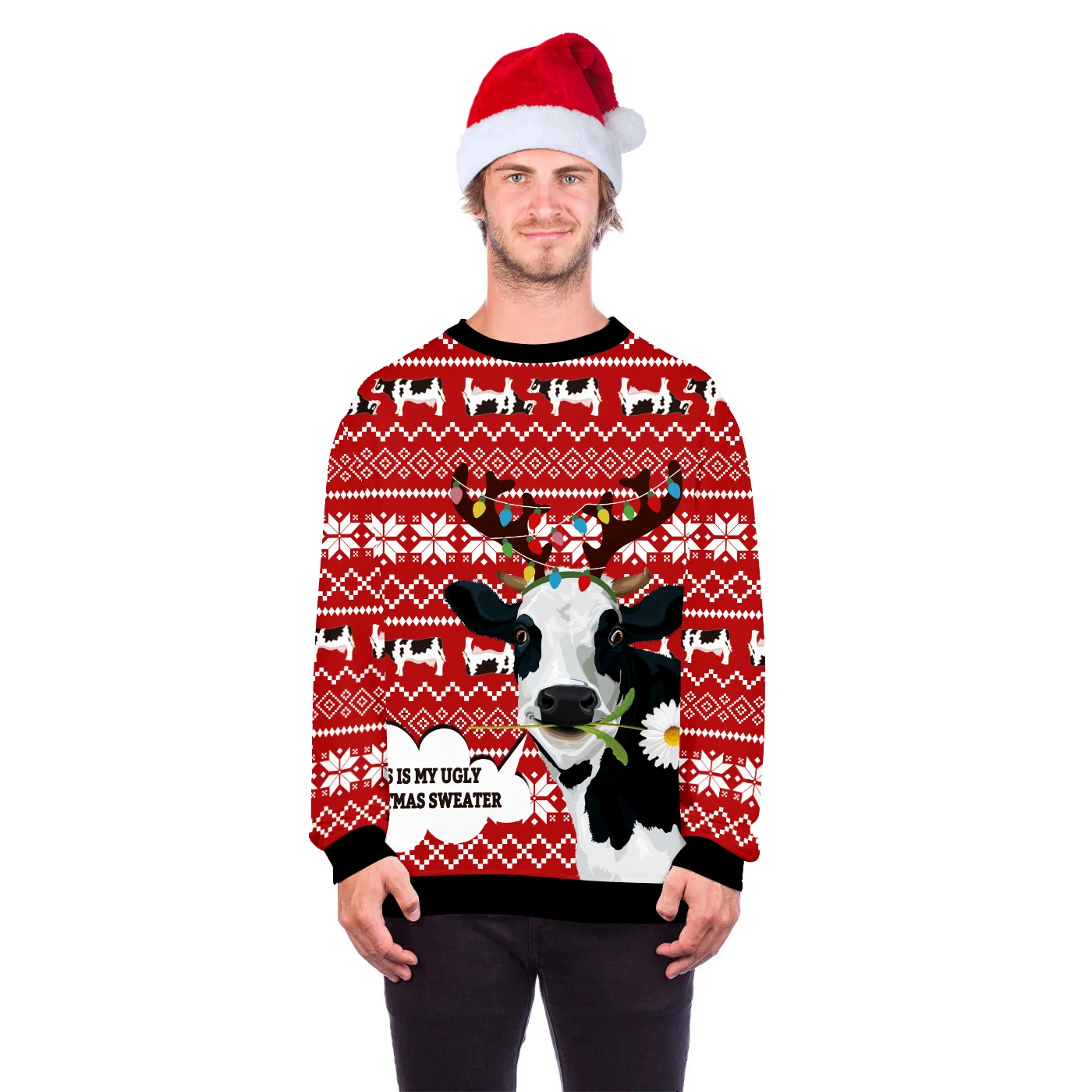 Красный рождественский джемпер для праздника, вечеринки, повседневный уродливечерние свитер 2021, модные 3D Животные, коровы, принт размера плюс, пуловеры, Топ унисекс