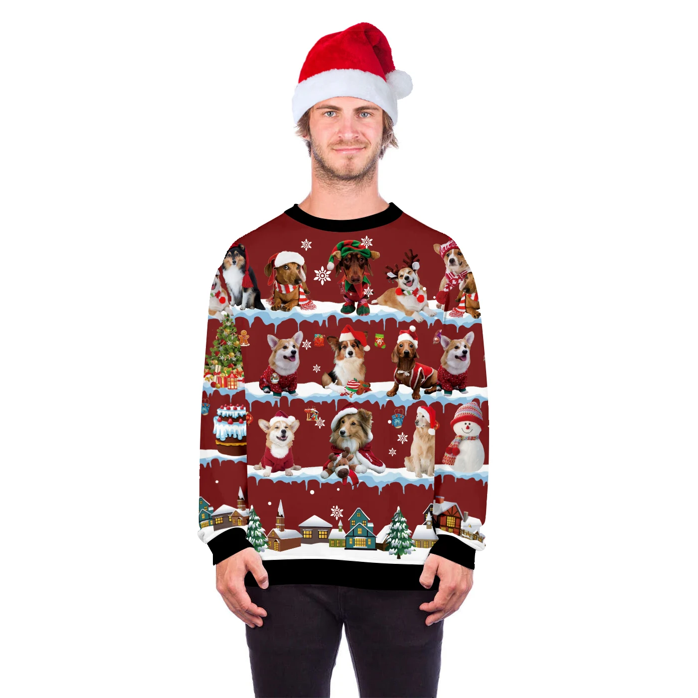 Свитер унисекс с забавным принтом в виде животных, рождественский д...