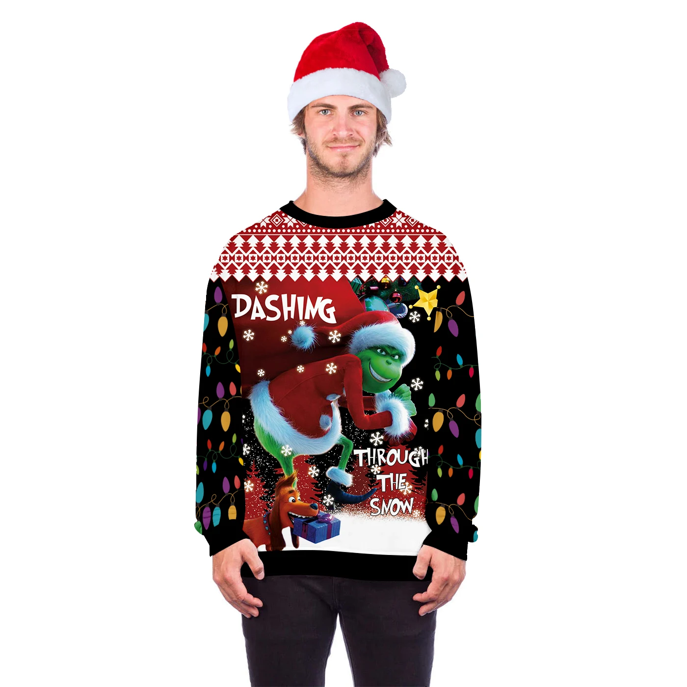 Уродливый Рождественский свитер 3D аниме принт Осень Зима рождестве...