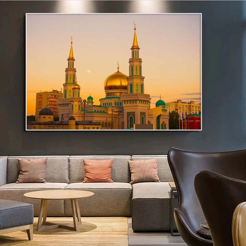 Настенный декор, картины на холсте, настенное искусство, мусульманский ландшафт, настенные плакаты и картины для дома