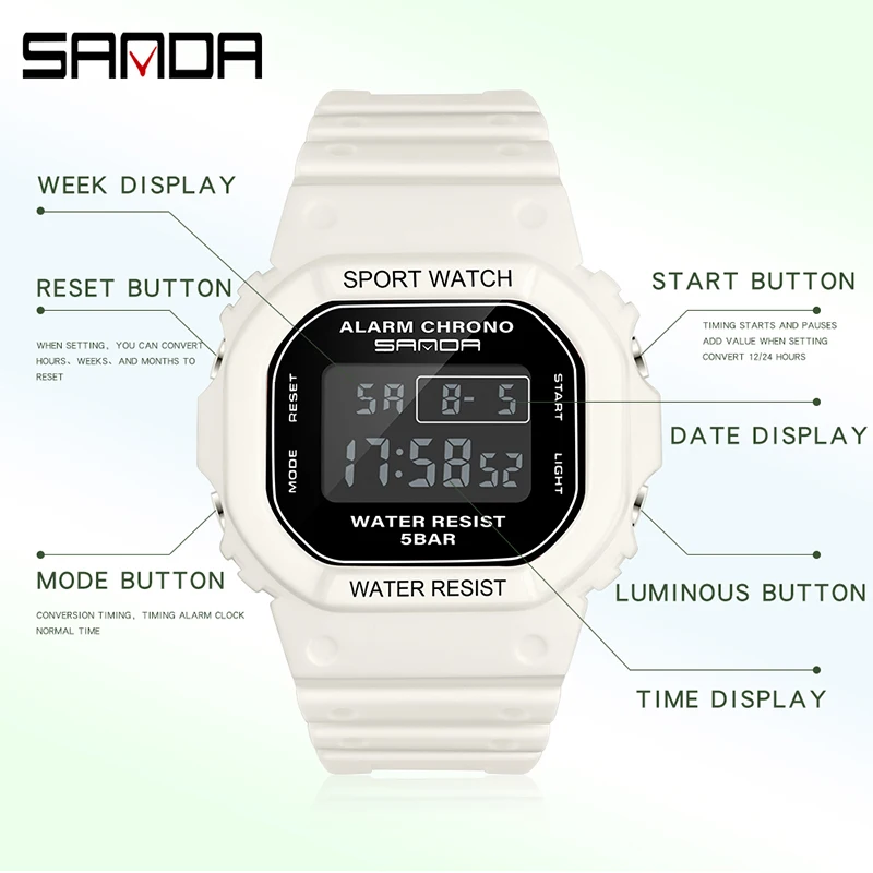 Часы наручные SANDA мужскиеженские цифровые, спортивные электронные квадратные водонепроницаемые до 50 м, для влюбленных, 293