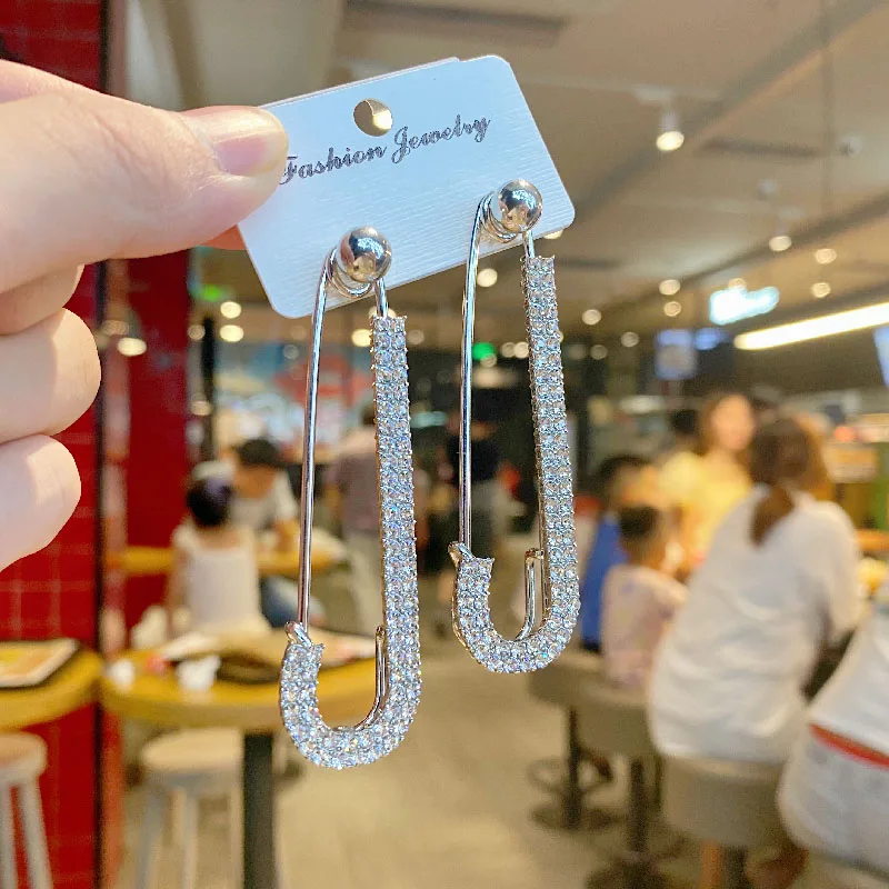 Женские серьги с булавкой, модные геометрические серьги с бриллиантами, 2021