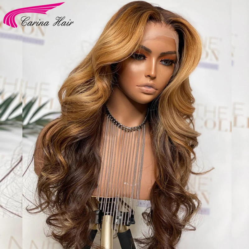 Омбре медовый блонд 180% кружевной передний парик из человеческих волос Волнистые Омбре хайлайтер цвет Предварительно выщипанные бразильские Реми кружевные передние парики