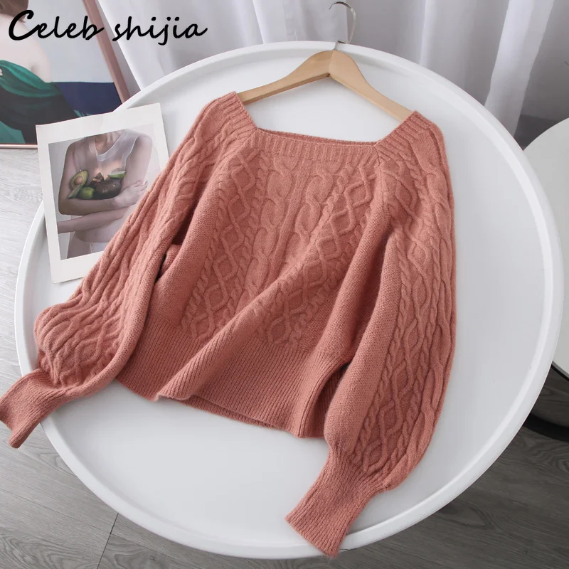 Женский шерстяной свитер SHIJIA, элегантный вязаный пуловер цвета хаки в Корейском стиле с квадратным вырезом и длинным рукавом, осень 2021