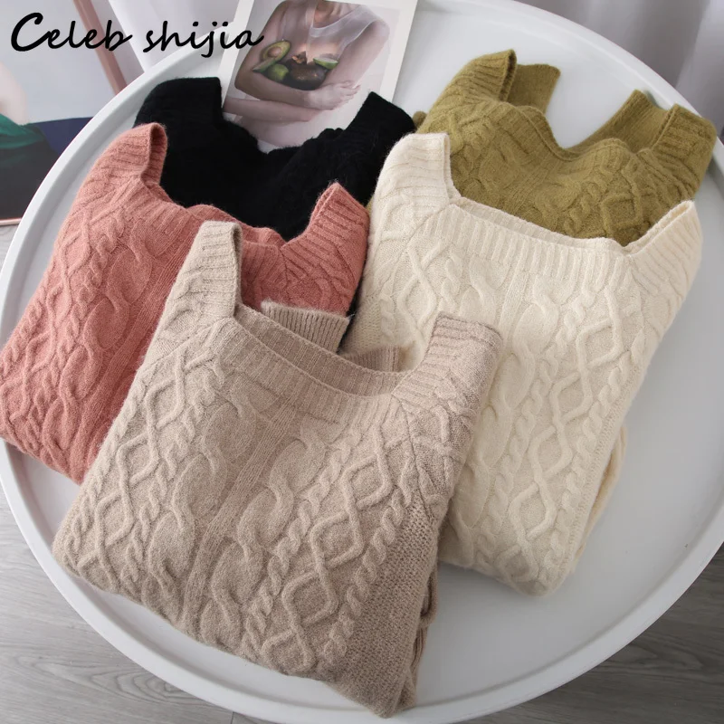 Женский свитер с V-образным вырезом SHIJIA, плотный вязаный пуловер...
