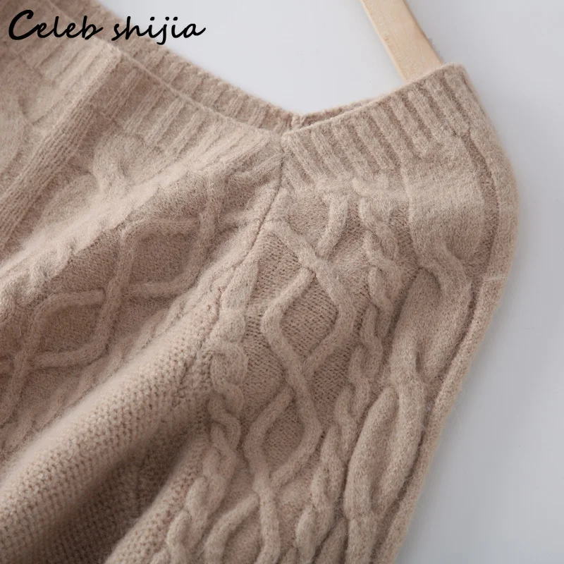 SHIJIA, коричневые шикарные вязаные топы, женский свитер, осенний Н...