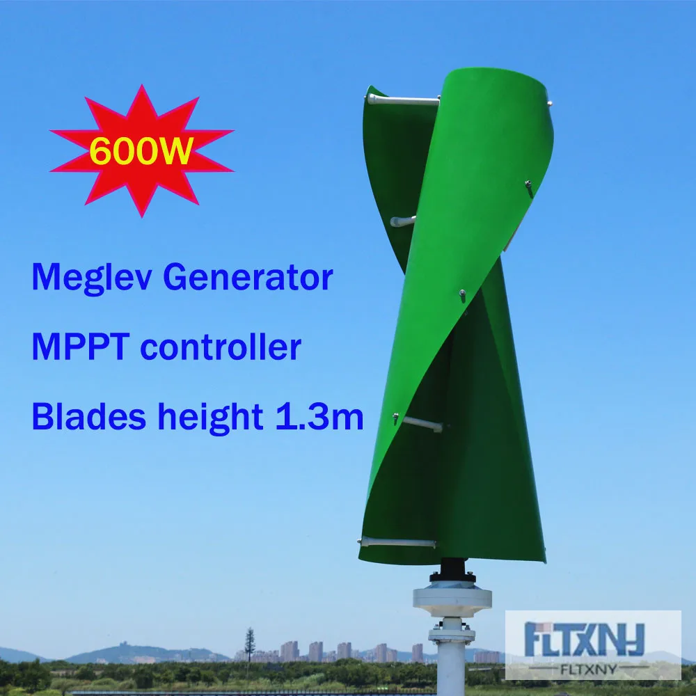 Ветряная Турбина, новая энергия, вертикальное винтовое крыло, 300 Вт, 400 Вт, 600 Вт, ветряные мельницы, магнитный генератор и автоматический контроллер MPPT для домашнего использования