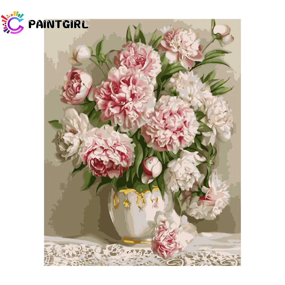 VA-2533 картина маслом по номерам, цветы и женщины, DIY Краска по н...