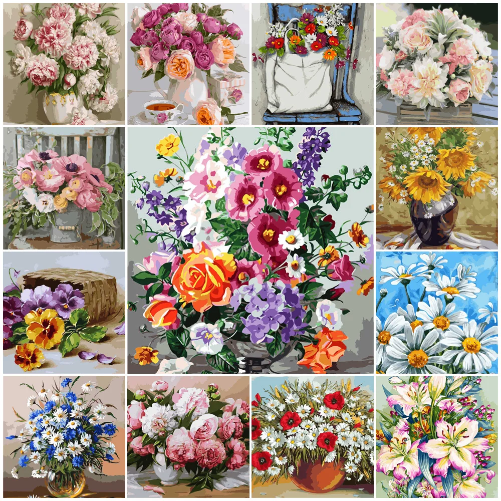 Картина маслом цветов, без рамки, 50x40 см, 28 цветов, рукоделие сд...