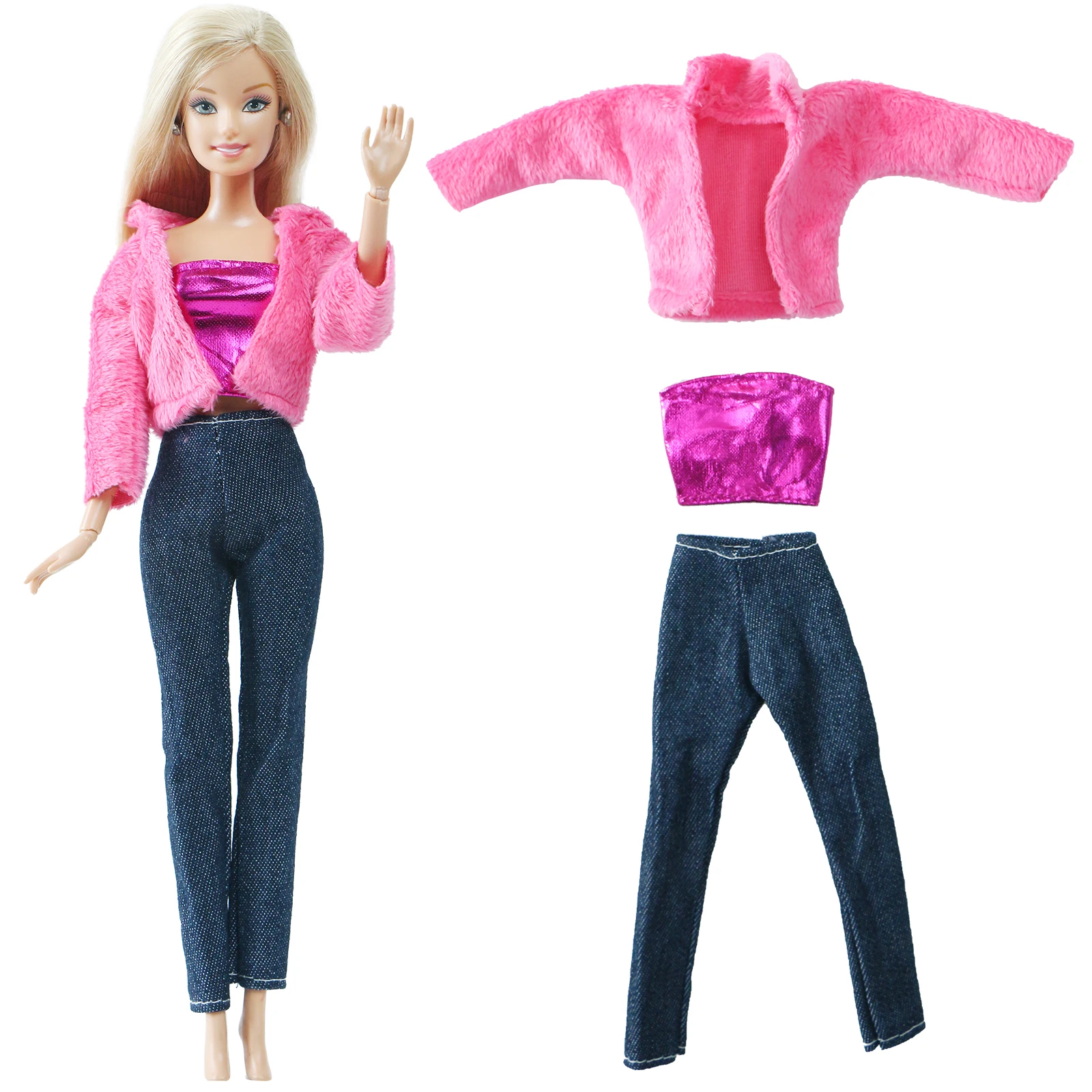 Наряд для куклы BJDBUS 3 шт.компл., розовое пальто, блестящие топы, брюки, повседневная одежда для Барби, аксессуары для кукол, детская игрушка