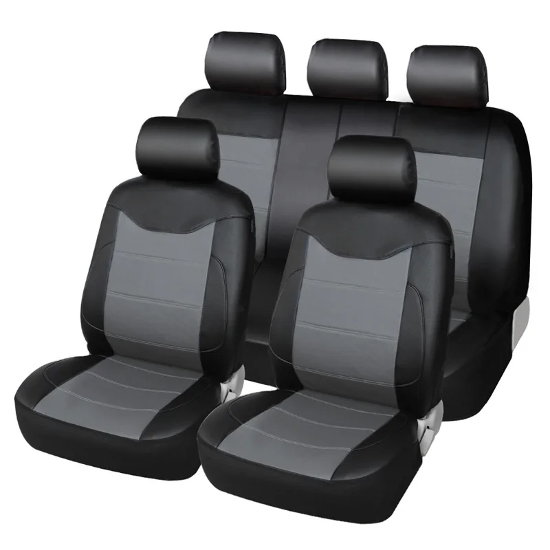 Из искусственной кожи универсальные чехлы на сиденья автомобиля, полный комплект чехлов на сиденья автомобиля, универсальные чехлы для toyota lada kalina granta, серый цвет