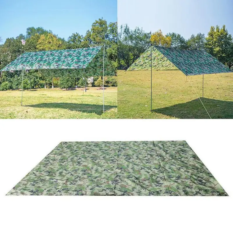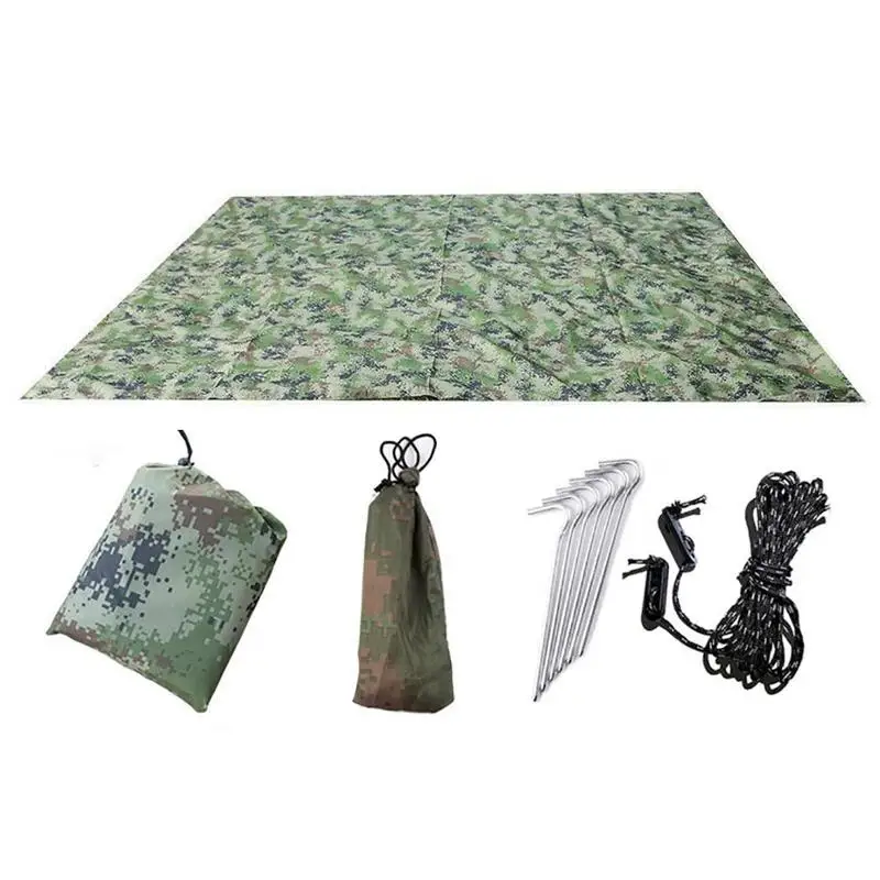 Описание100% новый и высокое качествоМатериал: брезентРазмер: 100*145 см/300*290Цвет: камуфляжНабор: солнцезащитный коврик 100*145 см + сумка для храненияB набор: 300*290 см коврик от солнца + Гвозди + веревки + сумка для храненияНе только палатка, но и влагостойкое одеяло для пикника.Прочная конструкция с кружевными отверстиями.Может выдерживать низкие и высокие температуры, подходит для 4 сезонов использования.Утолщенная водонепроницаемая и Солнцезащитная полиэфирная ткань.Примечание:1. По причине фотографирования, пожалуйста, допускайте незначительные различия в цветеПосылка включает в себя:1 шт. 100*145 см коврик от солнца1 шт. сумка для храненияИли1 шт. 300*290 см коврик от солнца6 гвоздей6 шт. канатов1 шт. сумка для храненияАртикул: ZRT9230