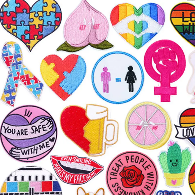 Нашивки с сердцем с изображением ЛГБТ-радуги, наклейки на одежду, мультяшная аппликация, вышитые нашивки на одежду, швейные нашивки, значки