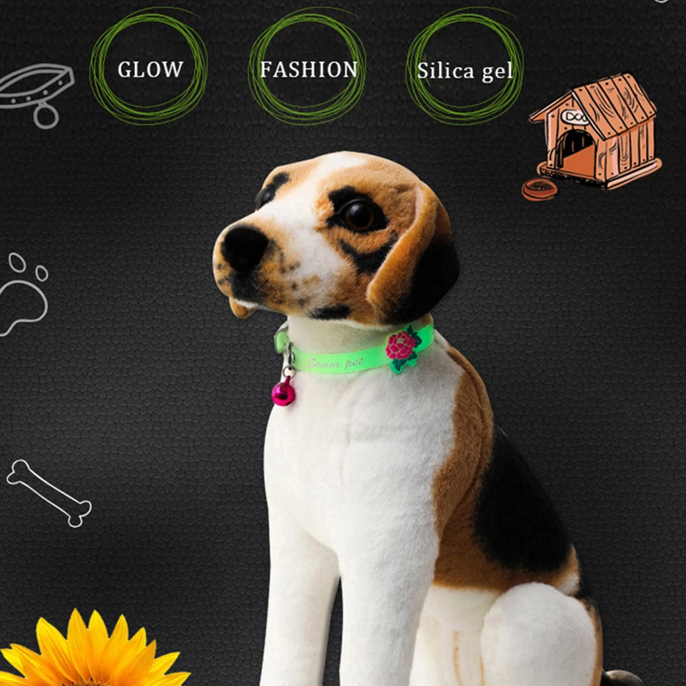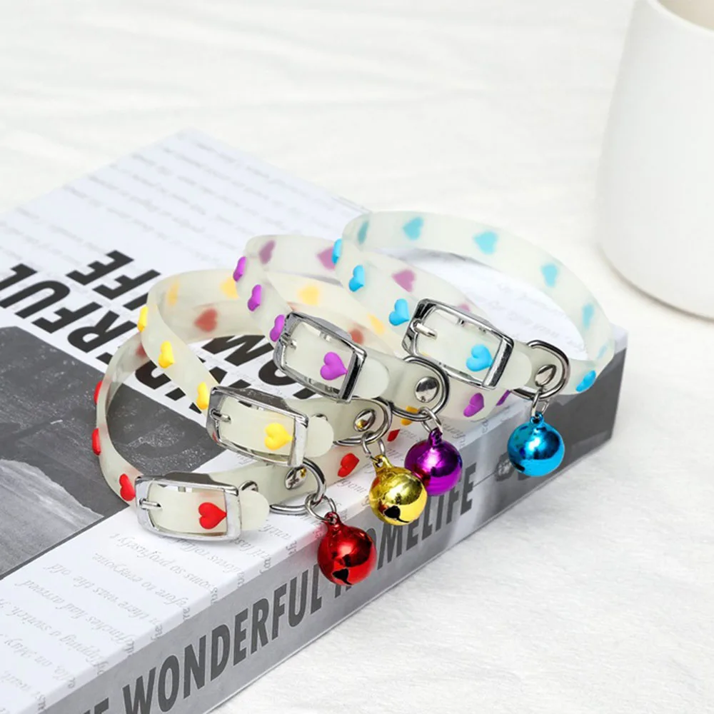 Светящиеся ошейники для маленьких домашних животных с колокольчиком, светящиеся ночью, ожерелье для щенков, собак, кошек, светящиеся кольца на шею, ошейник для кошек