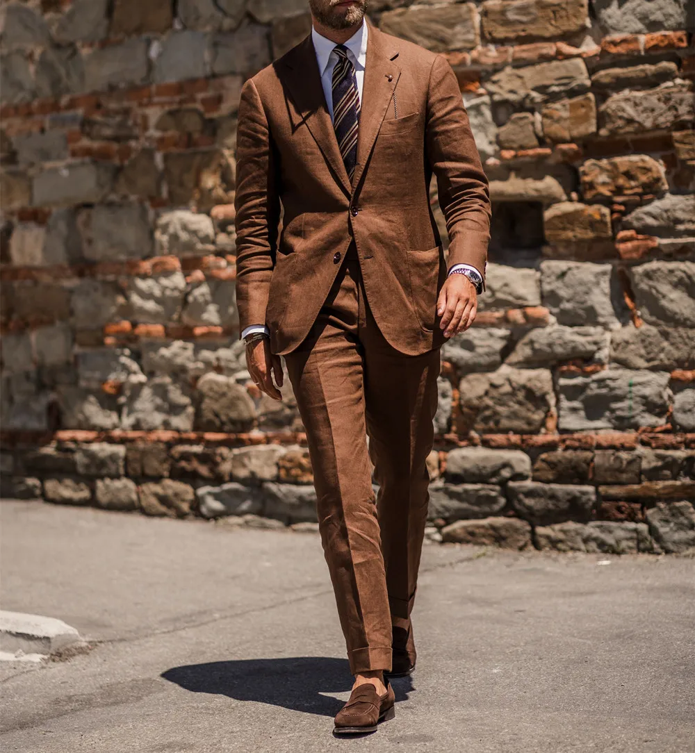 Блейзеры и брюки мужские из 2 предметов, облегающий деловой льняной летний костюм, лето 2022, свадебный смокинг для жениха, повседневные мужские костюмы по индивидуальному заказу