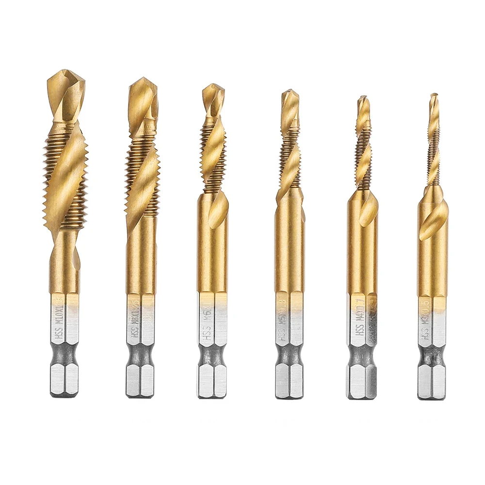 6 шт. метрический поток HSS сверла и сверла M3-M10 шестигранным хвостовиком с титановым покрытием резьба метрическое сверло под Метчик набор ручных инструментов