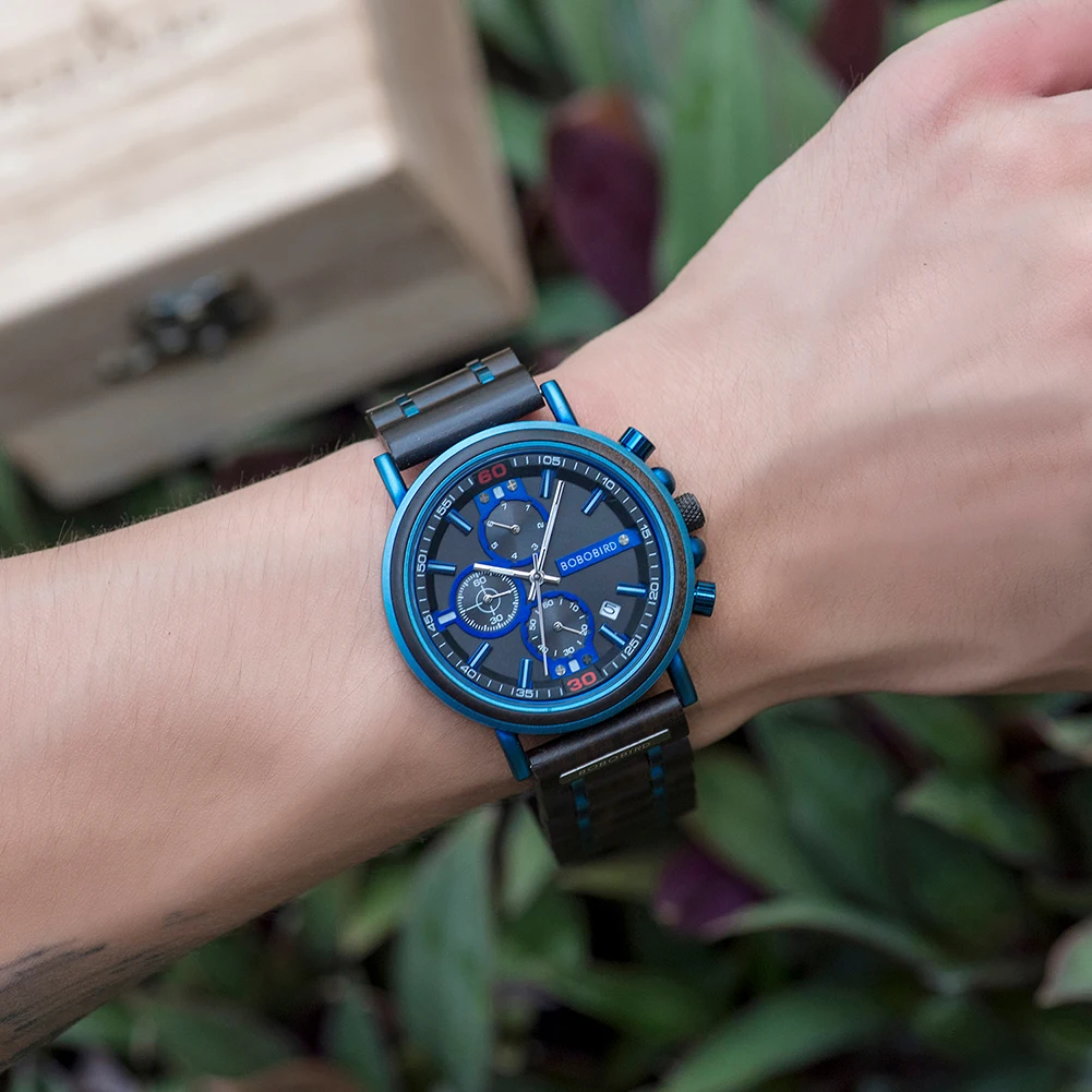 Мужские часы BOBO BIRD, мужские часы, дисплей даты, роскошные модные деревянные наручные часы, отличный подарок для папы, коробка, индивидуальная Настройка