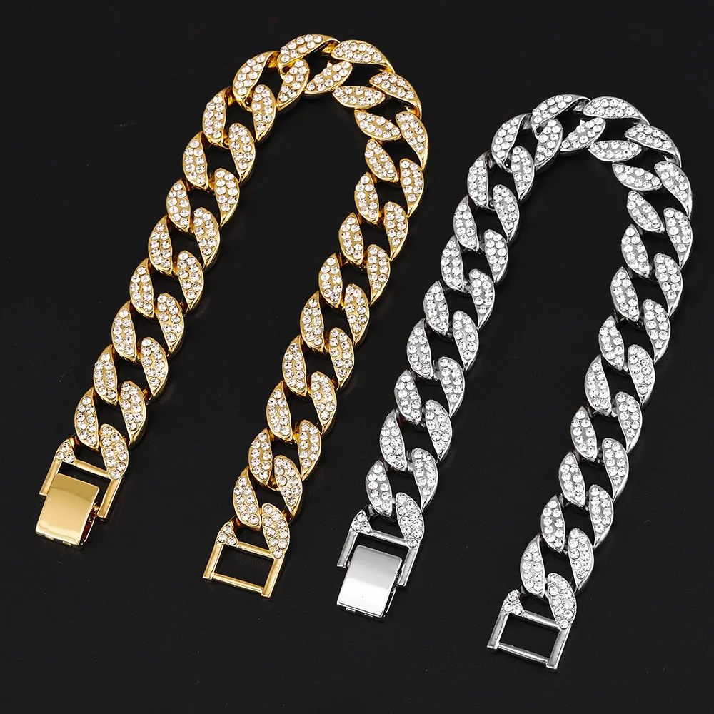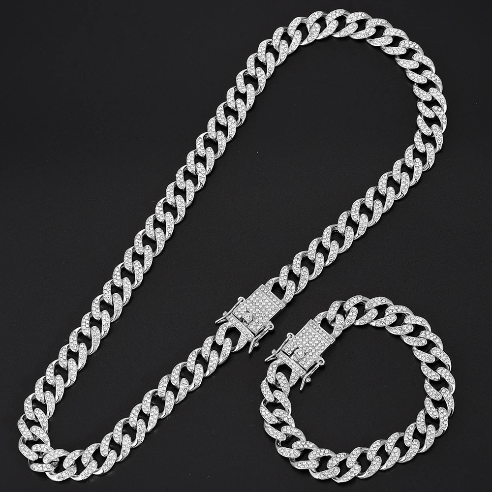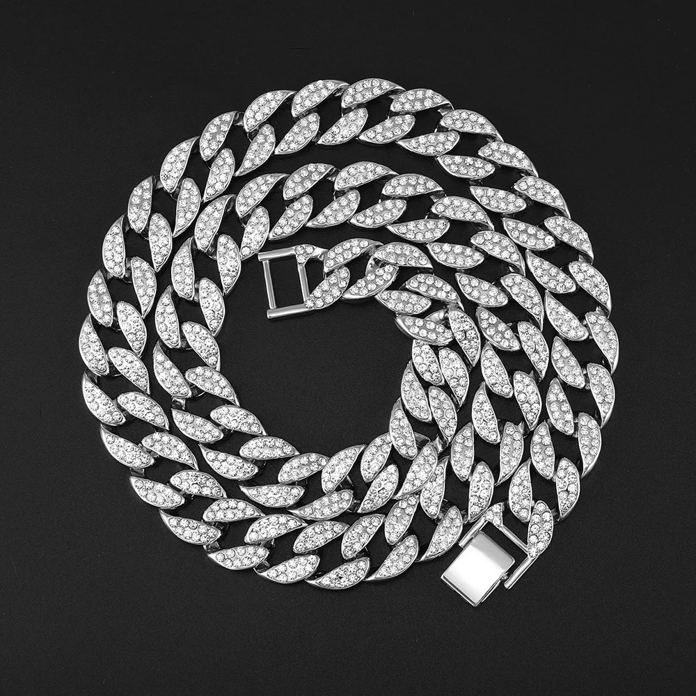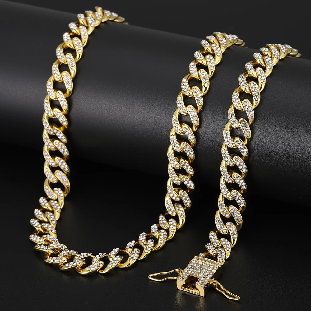 Мужская цепочка Neklace, Мужская цепочка под золото, большая тяжелая кубинская цепочка с шипами в стиле хип-хоп, ювелирные изделия, ожерелья со сверкающей цепочкой
